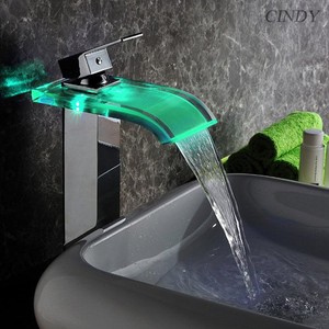 Led Bathroom Sink Faucet Vessel Waterfall Water Flow